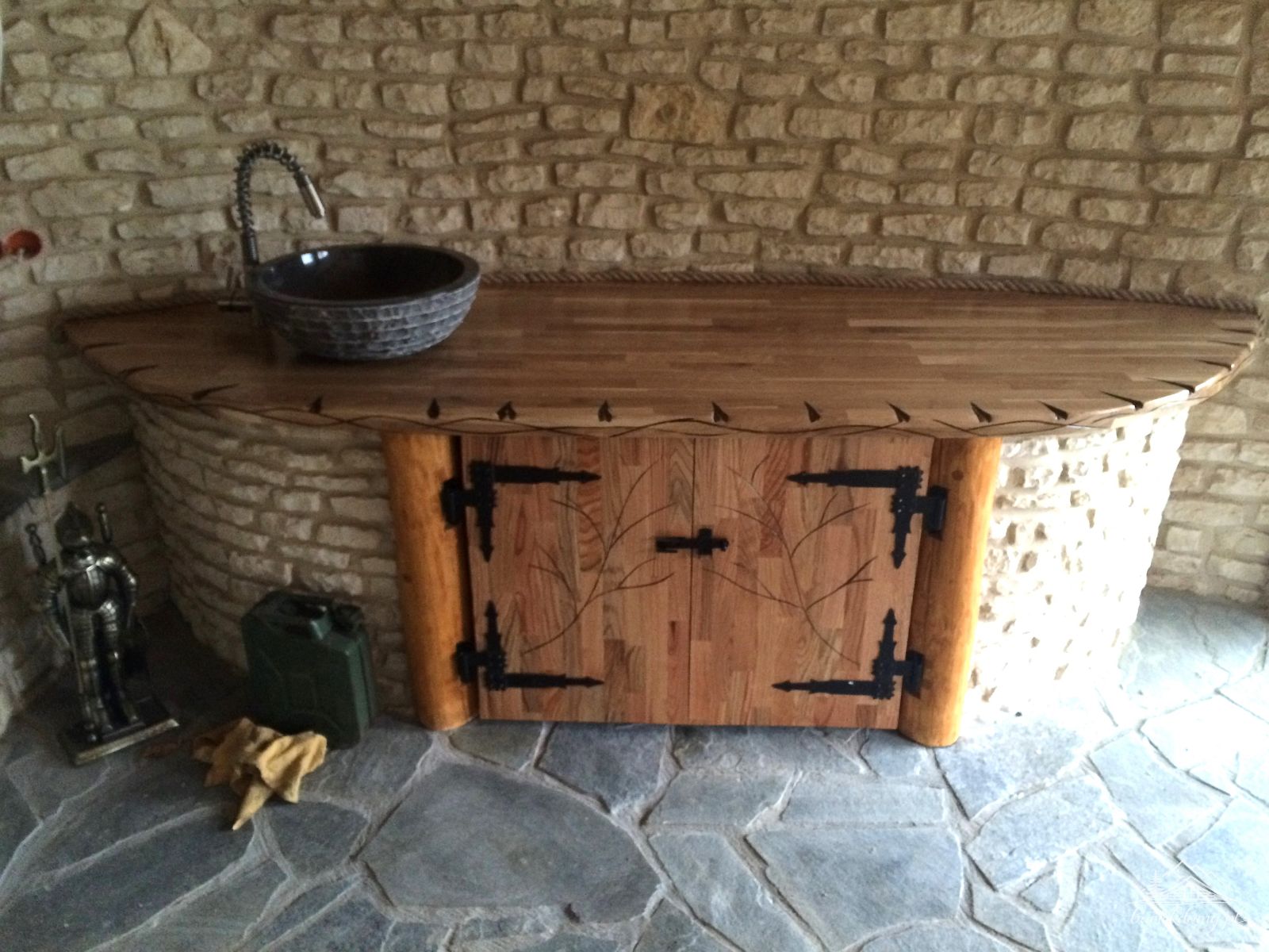 Połączenie drewna, kamienia naturalnego oraz solidnej płyty fundamentowej zapewnia trwałość budynku na wiele lat. Konstrukcja jest odporna na warunki atmosferyczne i intensywne użytkowanie.