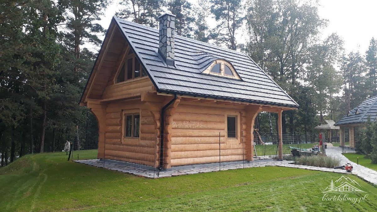Dom całoroczny z gankiem, z pół bala świerkowego- BART-P6.
