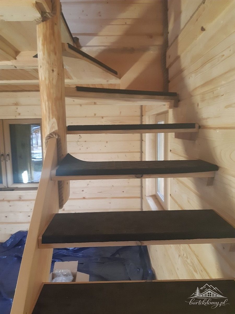 Schody wewnętrzne- deska o gr. 4cm lub pół bal o gr. 12cm.