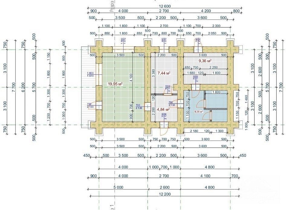 – ściany działowe z bali wg projektu.